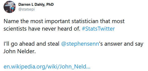 I am now going to admit to something that some of you might find heretical, but after reading her tweet, I cocked a cynical eyebrow and perhaps even let out a harrumph. After all, the thread was only a few hours old. And it’s not my fault that statistics had such strong British and (later) American influences in the 19th and 20th centuries! And it’s not my fault that the barriers to becoming a statistician in those times and places were much much lower for White men compared to others!! You can’t blame me for the world as it was!!!
